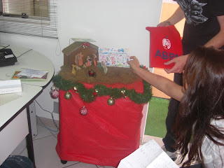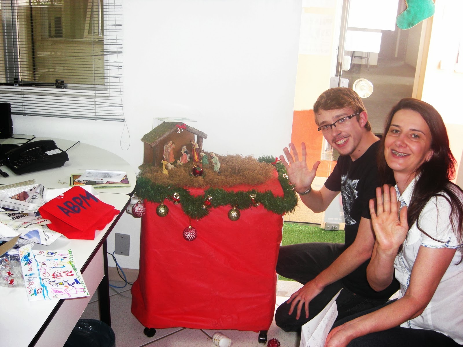 Depois de algumas especulações sobre qual seria seu conteúdo, abrimos e descobrimos que havia um motivo natalino: uma maçã vermelha com a base produzida de uma garrafa pet reciclada. Adoramos a criatividade e a dedicação nos detalhes do enfeite que agora dá um charme especial ao nosso Presépio.